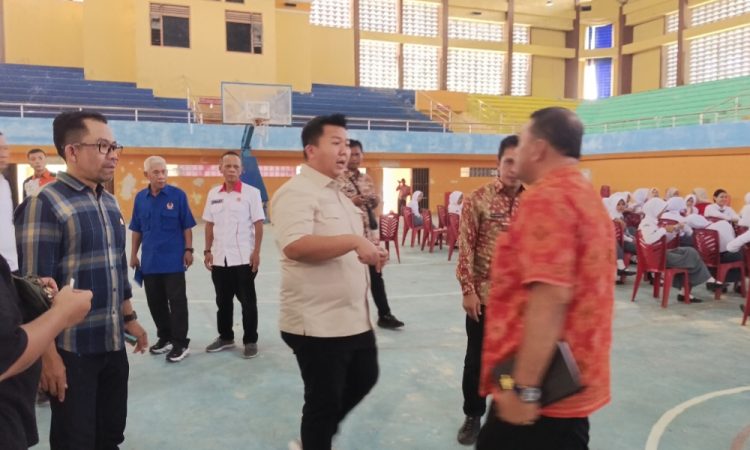 Foto ketua Pansus III bersama Sekdin Dispora tinjau Gedung Olahraga