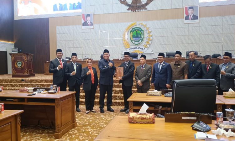 Penandatanganan bersama antara Wabup Iwan Tuaji dengan DPRD kabupaten PALI dilakukan di ruang rapat paripurna disaksikan sejumlah Kepala OPD dan Forkopimda dilingkungan Pemkab PALI.